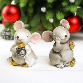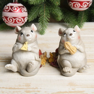 - Тематические статуэтки. Царственное семейство хвостатиков в роскошных одеждах или очаровательная малышка-грызунья с пирожными — такие фигурки придадут обстановке нотки сказочности. А за уважение символ года щедро наградит вас везением на все 365 дней.