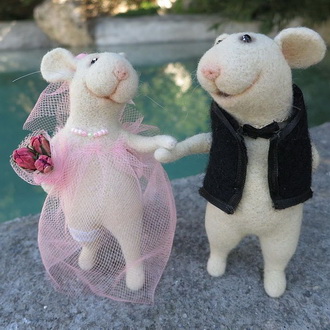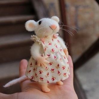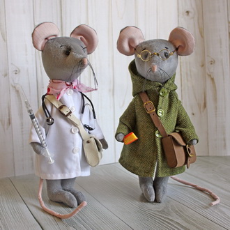 - Фигурки сказочных грызунов. Симпатичная зверушка в передничке с упоением поедает ломтик сыра. Ее сестричка лукаво выглядывает из рукавицы. А это любопытное существо забралось в мешочек с рождественскими сладостями. Забавные создания мгновенно очаруют каждого, кому вы сделаете такой подарок.
